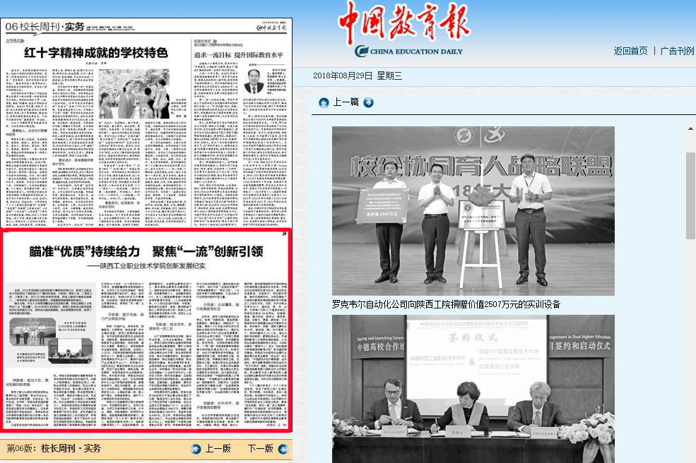 以国家首批现代学徒制试点为契机,学院大胆探索新时期教育制度与劳动制度有机结合的实现形式,创新人才培养模式,探索招生招工一体、校企协同育人的新路径。校企以联合开展技术攻关、联合建立研发平台、联合承担重大课题、联合培养技能人才为纽带,推进多方融合互动,形成了以“四合作”为主线的人才培养机制。作为全国高职27所诊改试点院校之一,学院在陕西率先开展教学诊断与改进工作,学院诊改工作受到国家教育部门的充分肯定,多次受邀在全国大型职教会议上作交流发言,学院的典型经验做法,吸引了省内外20多所兄弟院校前来问道取经。学院承接国家教育部门高职教育创新发展行动计划的45个任务、15个项目和62个子项目,承接数量居陕西高职院校之首,已列支2亿元启动实施的“高职教育创新发展行动计划”。通过一系列的改革试点,学院办学实力不断增强,先后获批“国家优质高职院校”立项建设单位、陕西省“双一流”立项建设单位。