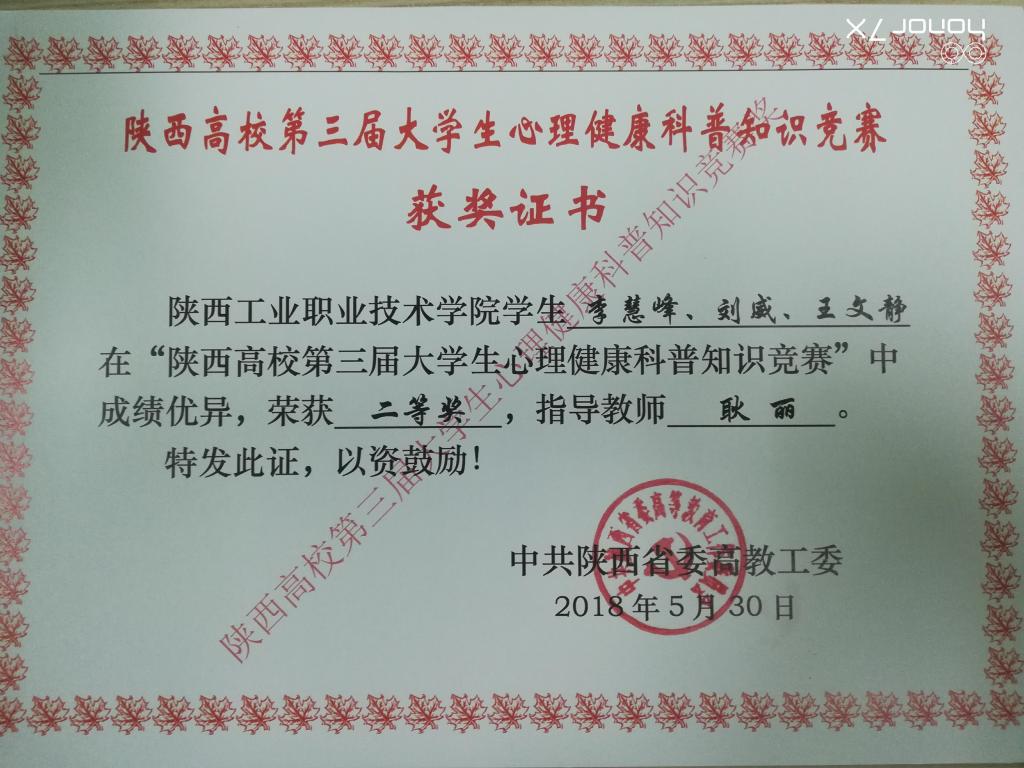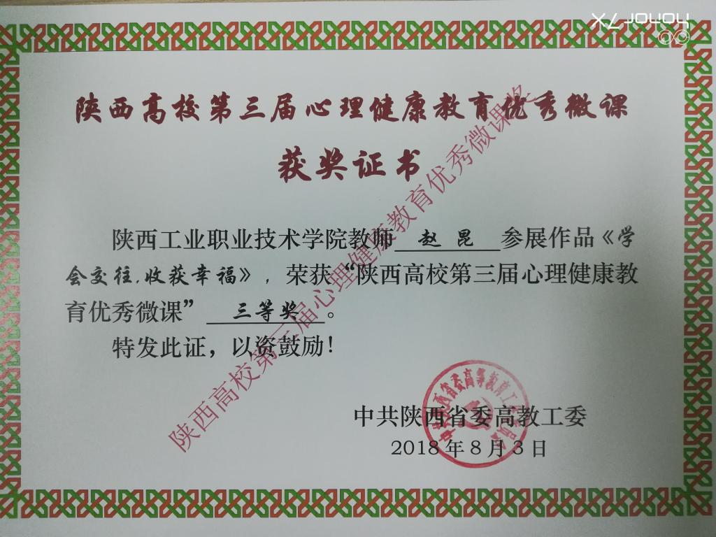 在第三届全省心理育人宣传季期间,乐游棋牌还获得“陕西高校第三届心理健康科普知识大赛”初赛一等奖,决赛二等奖的好成绩,同时获得“陕西省高校第三届心理健康教育优秀微课”三等奖一项。