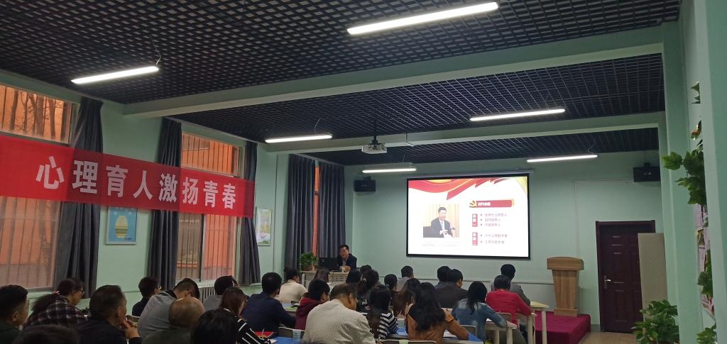10月8日下午,党委副书记、副院长刘永亮同志在大学生思想政治教育温馨港团体心理辅导室为学生工作党总支全体党员和近两年新进辅导员等58人讲党课。