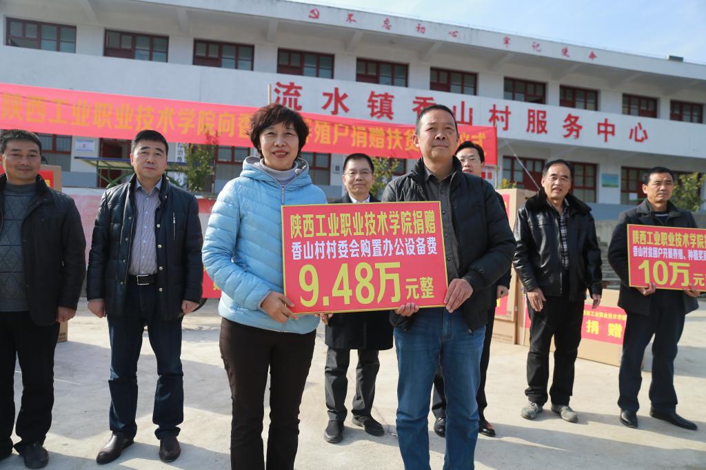 11月24日,陕西工业职业技术学院2018年“两联一包”养殖、种植奖补资金发放暨办公设备捐赠仪式在安康市汉滨区流水镇香山村举行。乐游棋牌党委书记惠朝阳、院长张晓云、纪委书记康强及学院扶贫工作小组成员,汉滨区区委常委、组织部部长郭正峰,流水镇党委书记陈刚和香山村两委班子、村民代表参加了仪式,康强同志主持仪式。