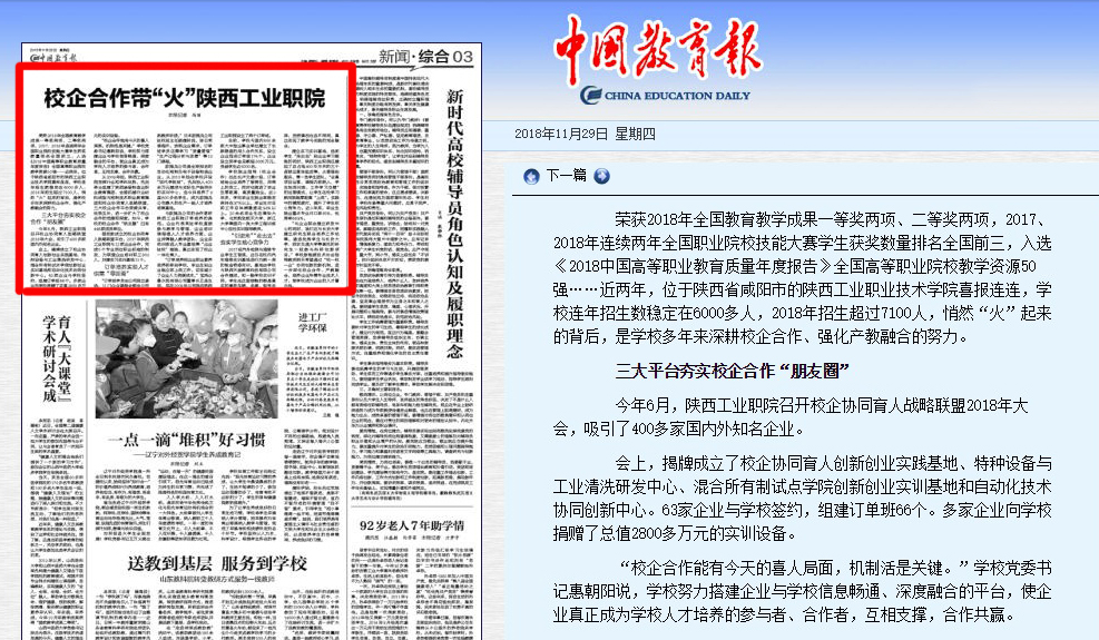 中国教育报:校企合作带“火”陕西工业职业技术学院