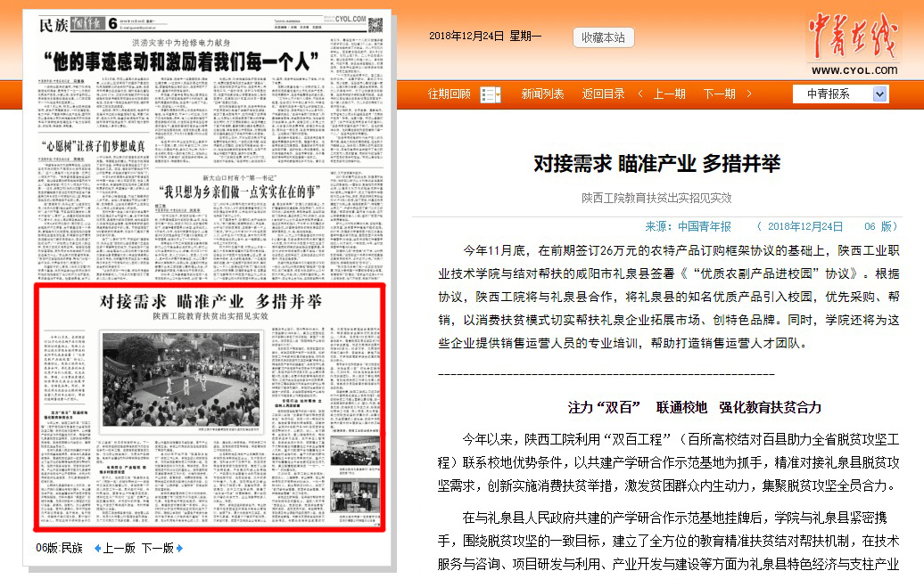 中国青年报:陕西工院教育扶贫出实招见实效