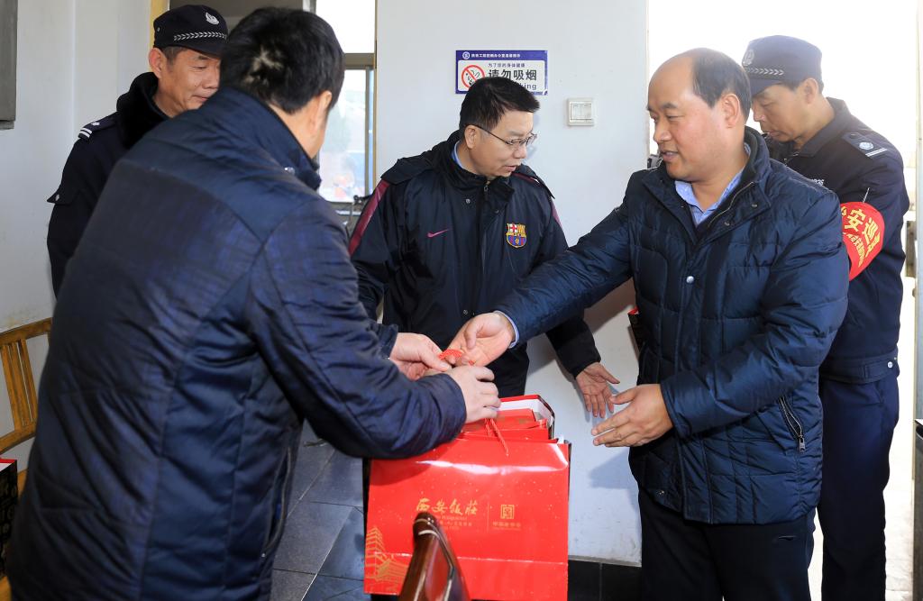 2019年春节将至,2月2日下午,党委书记惠朝阳、副院长梅创社在党政办、保卫处、后勤处等部门负责同志的陪同下,代表学院党委行政看望了春节期间依然坚守岗位的教职工,向他们致以新春的祝福和问候,送上春节慰问品,并通过他们向所有春节期间放弃休息、履职尽责的教职工拜年。