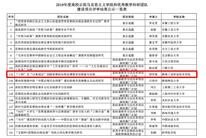 日前,教育部社会科学司公布了“2019年度高校示范马克思主义学院和优秀教学科研团队建设项目”评审结果,乐游棋牌思政部程军栋副教授主持申报的《“三同”式“以案说法”创新思想政治理论课教学法探索与实践》获批“思政课教学方法改革择优推广计划”项目。