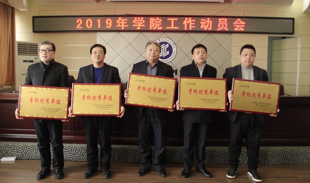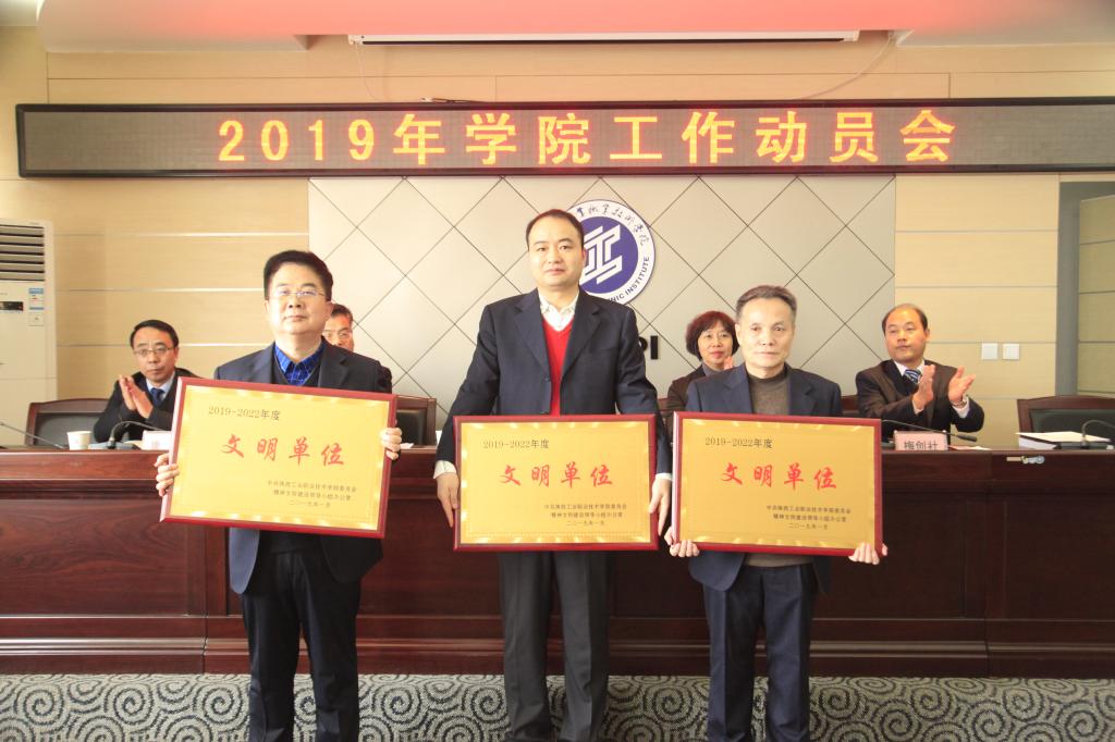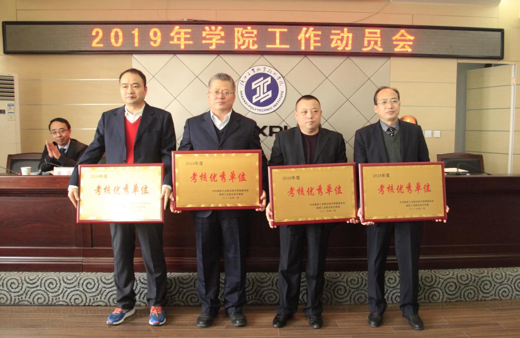 会上,副院长梅创社宣读了2018年度学院文明单位以及考核优秀等次处级单位、教职工、科级干部、处级干部表彰名单,学院领导为文明单位和考核优秀等次处级单位颁发了奖牌。
