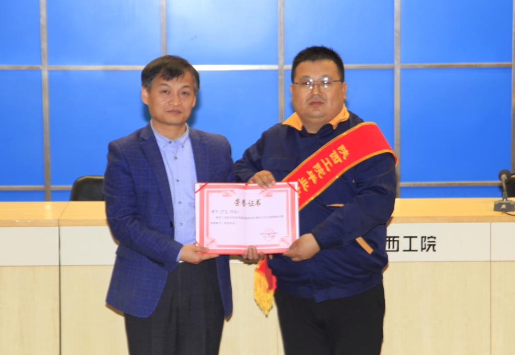 党委副书记贺天柱为优秀毕业生、建功立业先进人物严飞颁发证书