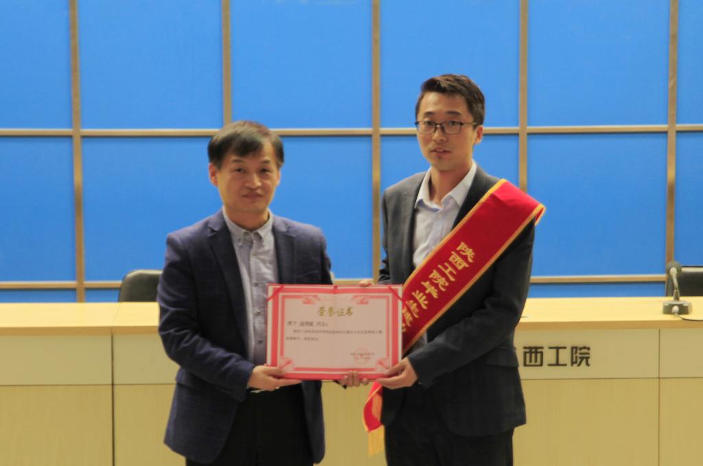 党委副书记贺天柱为优秀毕业生、建功立业先进人物寇博鋐颁发证书
