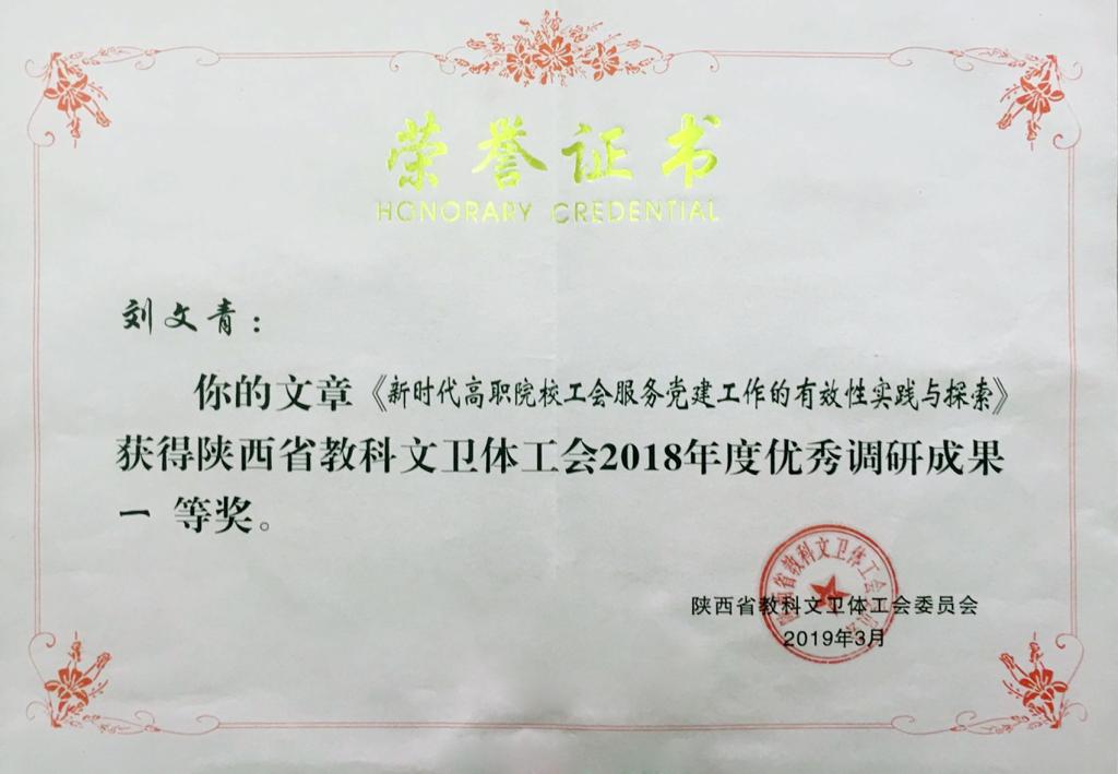 近日,陕西省教科文卫体工会对2018年度优秀调研成果和优秀调研单位进行通报表彰(陕科文卫体工字[2019]9号),乐游棋牌工会主席、统战部部长刘文青获优秀调研成果一等奖,财务处处长邓丽萍和工会祁广科分获三等奖。刘文青同志出席会议并上台领奖。乐游棋牌工运理论研究工作已连续八年获省教科文卫体工会表彰。
