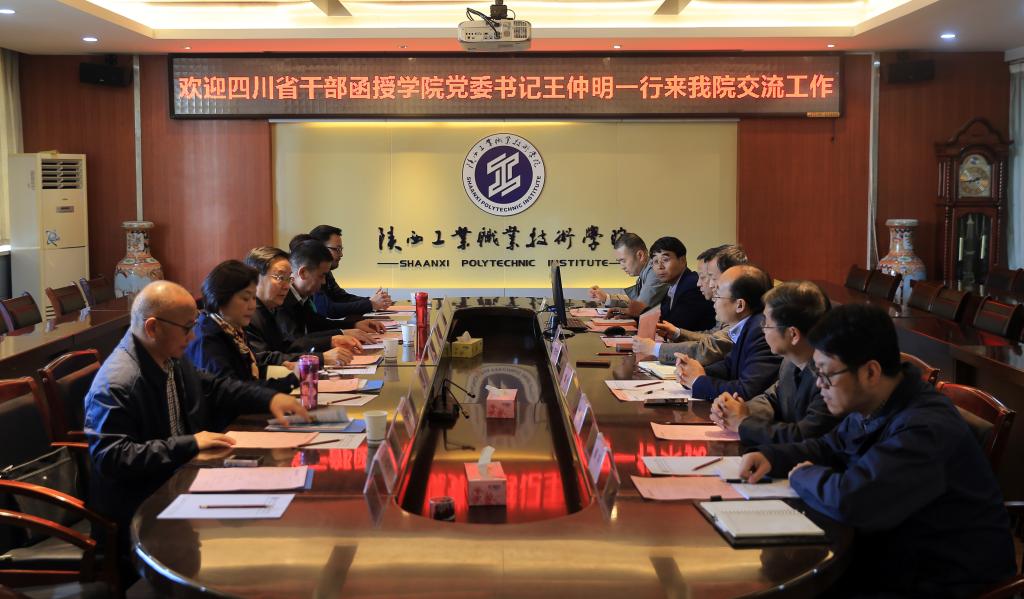 在观看了学院宣传片后,党委副书记贺天柱代表学院领导对王仲明书记一行的到来表示欢迎。他从历史沿革、办学特色、办学成果三个方面对乐游棋牌的基本情况进行了介绍。王仲明书记对四川省干部函授学院、四川省文化产业职业学院的基本情况进行了介绍,并说明了本次来访交流的主要目的。质管中心主任南欢从局部试点、全面推进、常态化诊改、诊改成效等四个方面对乐游棋牌诊改开展情况作了介绍,并重点说明了内部质量保证体系构建、目标链标准链打造、质量改进螺旋构建、智能校园信息化建设等内容。人事处处长卢庆林、教务处副处长刘军旭、学生处处长张翔分别介绍了五横层面的做法和体会。组织干部科科长侯涛介绍了乐游棋牌党建方面的一些做法。双方就相关问题进行了深入交流。