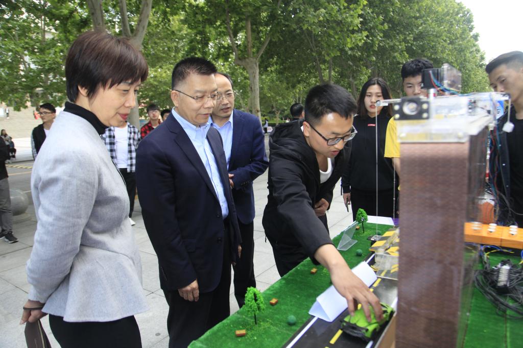2019年全国职业教育活动周于本周正式拉开了帷幕,5月8日下午,乐游棋牌2019年职教活动周之“匠心筑梦,智造未来”大学生科技作品展在成才大道举行。党委书记惠朝阳、院长张晓云、纪委书记康强、副院长梅创社、副院长刘清和党委宣传部、教务处、团委等部门负责同志一起参观了展览。
