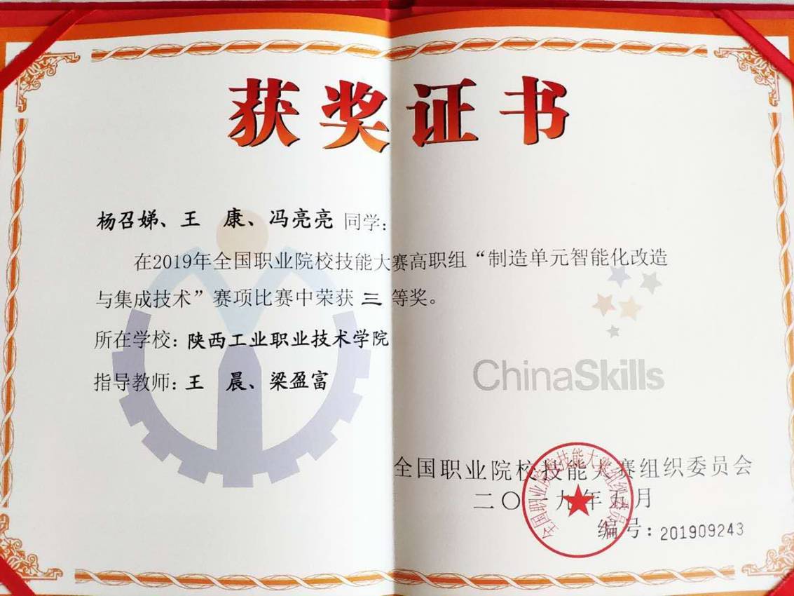 6月2日,2019年全国职业院校技能大赛制造单元智能化改造与集成技术赛项比赛在浙江举行。经过激烈角逐,由乐游棋牌数控工程学院教师梁盈富、王晨指导的机器人1701班杨召娣、王康,数维1701班冯亮亮3名同学获得该赛项团体三等奖。