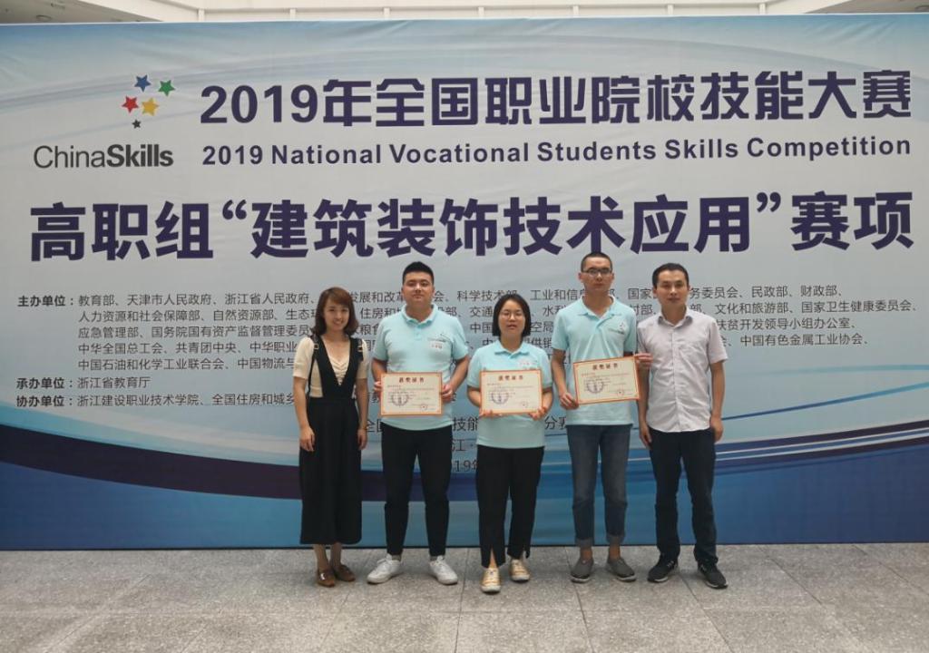 6月1日至2日,2019年全国职业院校技能大赛高职组“建筑装饰技术应用”赛项在杭州落下帷幕,本次竞赛共有全国79所院校的代表队参赛。乐游棋牌由教师张超、郭靖指导,工程造价1702班李悦、工程造价1703班王星、工程造价1706班雷博同学组成的代表队,经过激烈角逐,获得团体二等奖。
