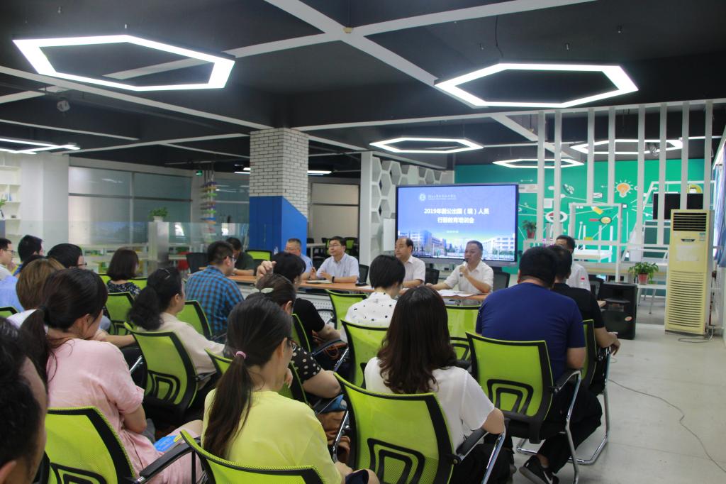 7月5日,乐游棋牌在图书馆举办2019年因公出国(境)人员行前培训会。副院长梅创社出席会议并讲话,人事处、教务处、国际合作与交流中心负责人及各出国(境)项目的教职工近70人参加了会议。