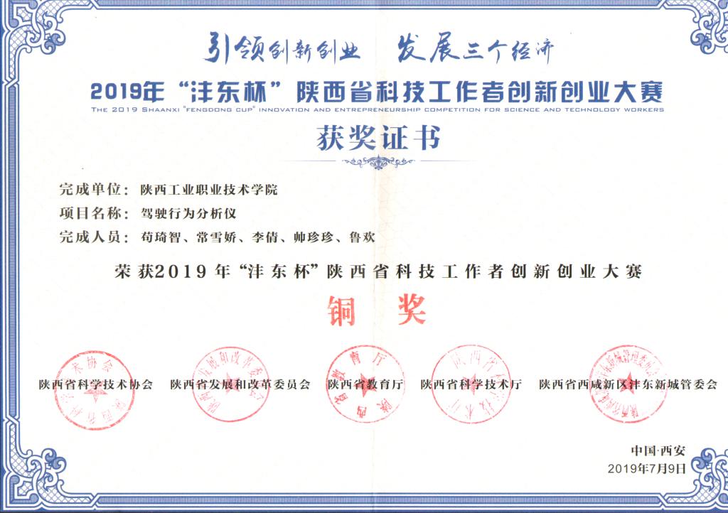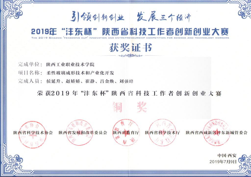 近日,2019年陕西省科技工作者创新创业大赛公布决赛结果(陕科协发[2019]事企字10号,由乐游棋牌侯延升主持完成的“柔性玻璃成形技术和产业化开发”成果,由苟琦智主持完成的“驾驶行为分析仪”成果荣获“2019年‘沣东杯’陕西省科技工作者创新创业大赛”铜奖2项。