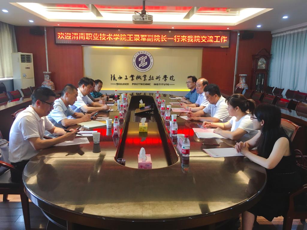 7月11日下午,渭南职业技术学院副院长王录军一行五人来乐游棋牌交流留学生工作,副院长梅创社,教务处、工商管理学院、国际合作与交流中心相关负责同志在崇文楼第一会议室与来宾进行了座谈交流。