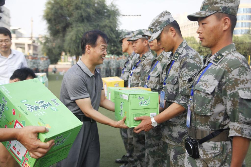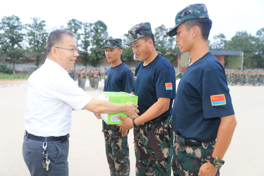 党委书记惠朝阳向军训教官发送慰问品