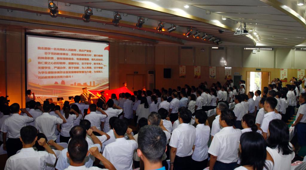 据悉,教师节前后,各教学部门也以模范遵守教育部颁布的《新时代高校教师职业行为十项则》和《教师职业道德规范》为主,分别开展了不同主题的教师宣誓活动。