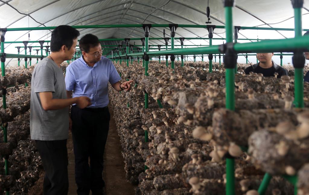 在香菇大棚,刘永亮副书记详细了解菌菇种植情况