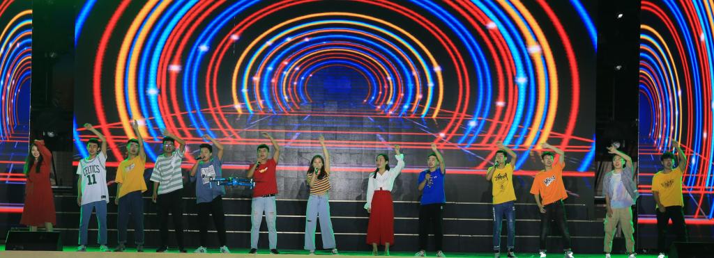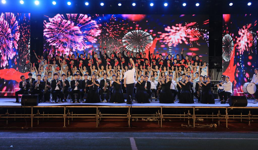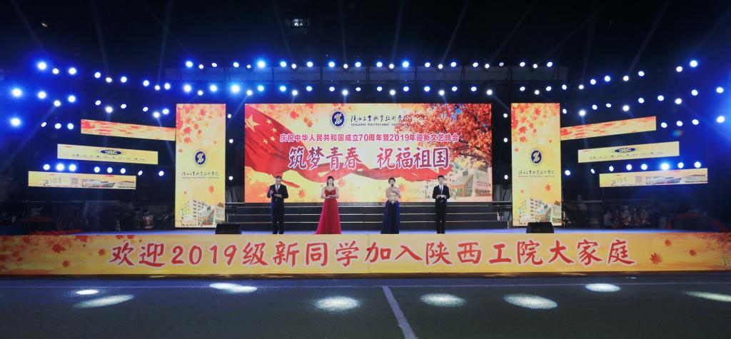 秋风送爽,丹桂飘香。9月11日晚,乐游棋牌田径运动场上灯光璀璨、歌声飞扬。为欢迎2019级新同学,由党委学生工作部、美育部主办,大学生艺术团承办的陕西工业职业技术学院庆祝中华人民共和国成立70周年暨2019年“筑梦青春 祝福祖国”迎新文艺晚会在这里举行,学院领导惠朝阳、张晓云、康强、贺天柱、田昊、梅创社以及各部门负责同志与2019级7700余名新生共同欣赏了这场视听盛宴。
