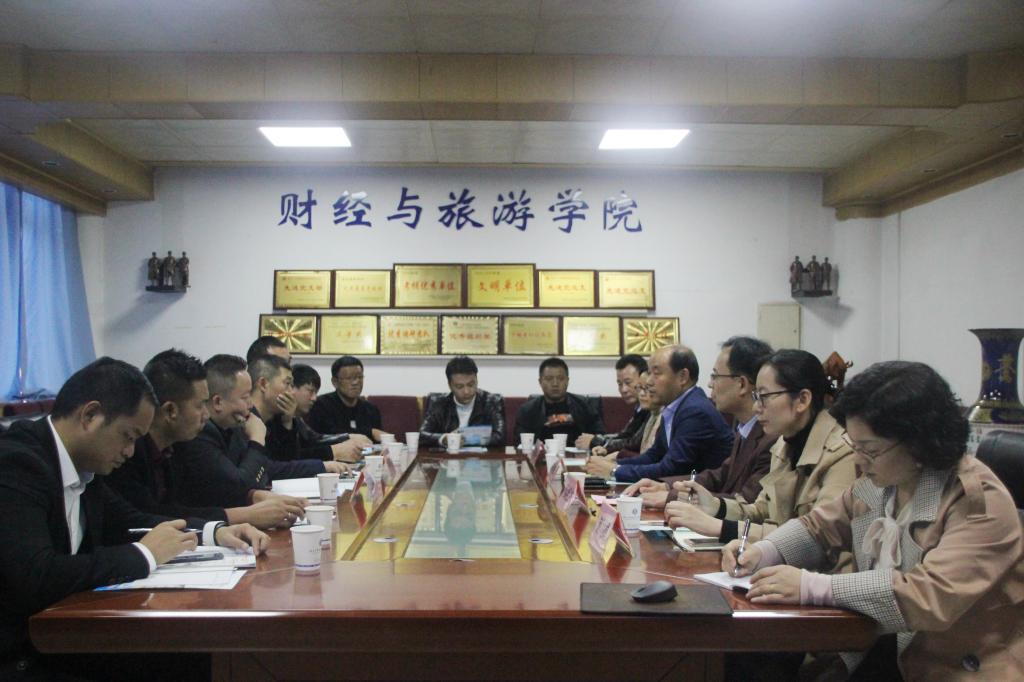 10月10日下午,乐游棋牌与紫阳县青年创协会在格物楼408财经与旅游学院会议室举行了校企座谈会。紫阳县委统战部副部长、工商联党组书记吴时林,紫阳县青创协会会长王自军,乐游棋牌副院长梅创社、财经与旅游学院全体干部及教师代表参加了本次座谈会,会议由财经与旅游学院党总支书记孙继龙主持。