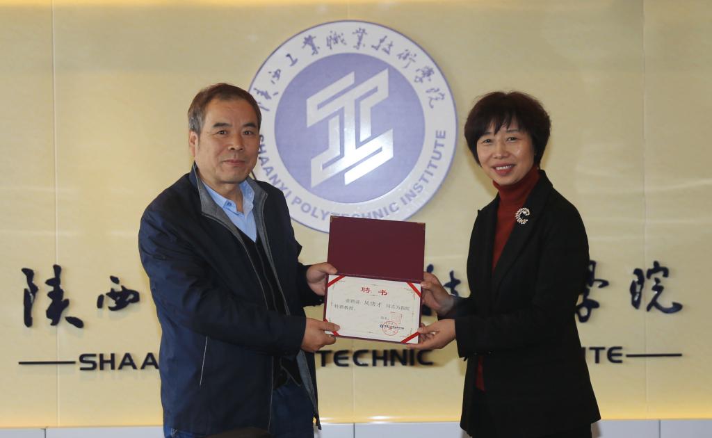 张晓云院长向凤绪才工程师颁发学院特聘教授证书