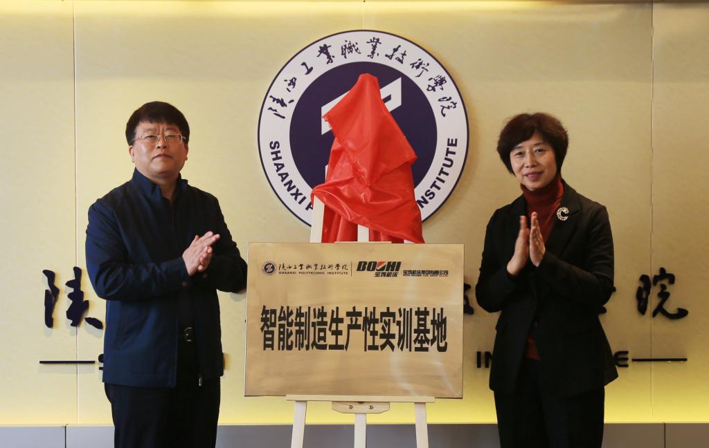 校企双方为“智能制造校内外生产性实训基地”进行揭牌