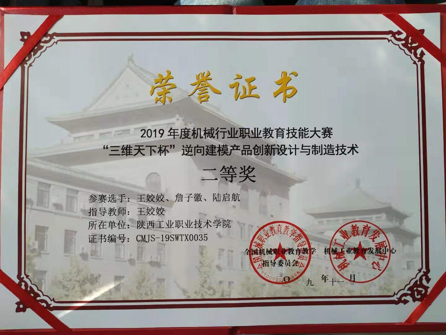11月3至6号,由全国机械行业职业教育指导委员会、机械工程教育发展中心主办的2019年度“三维天下杯”逆向建模产品创新设计与制造技术大赛在安徽天长举行,乐游棋牌航空工程学院教师王姣姣、数控1801班学生詹子徽、工设1801班学生陆启航代表学院参赛并斩获二等奖。