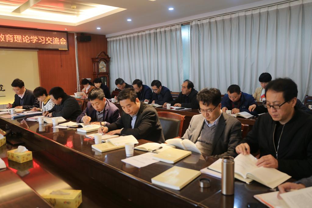 党委书记惠朝阳指出,要把学习宣传贯彻党的十九届四中全会精神作为当前和今后一段时期的重要政治任务,结合正在开展的“不忘初心、牢记使命”主题教育,聚焦办好人民满意的教育,进一步加强党对教育工作的全面领导,建立学习型组织,倡议每人每天半小时自学,真正用习近平新时代中国特色社会主义思想武装起来,边学边改边提高,不断提高办学治校的能力和水平。