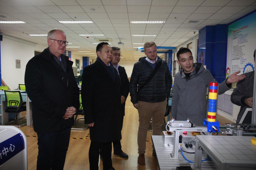 会前,田昊副书记陪同客人参观了乐游棋牌智能制造创新中心、汽车实训中心、模具实训中心、机加工中心、焊接实训中心和欧姆龙实训中心。