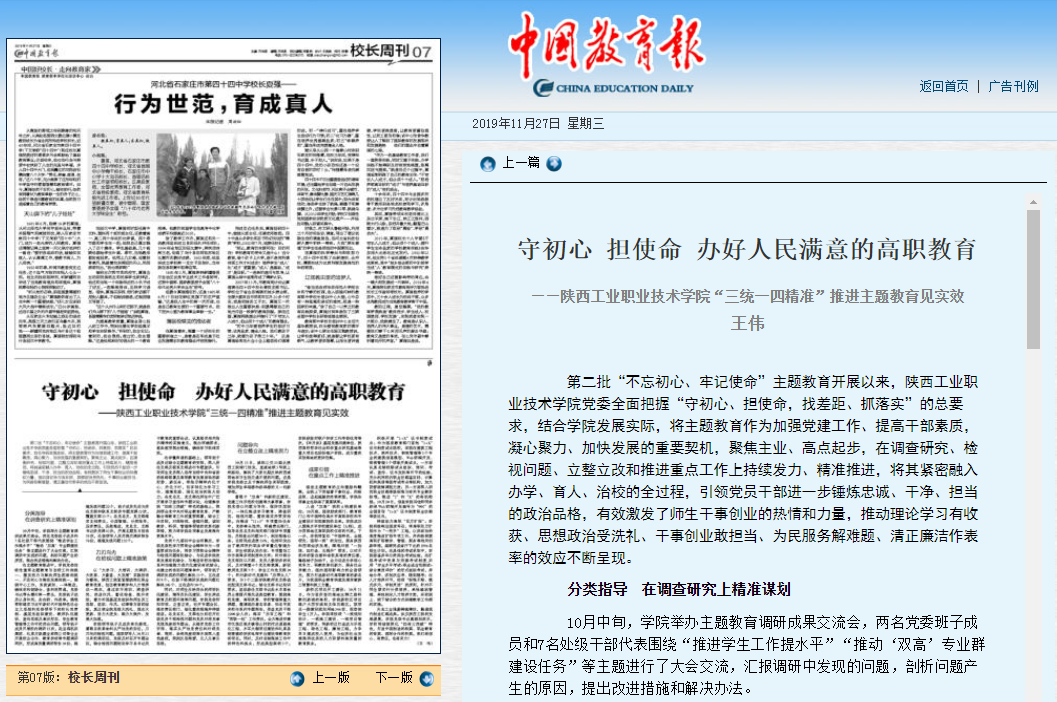中国教育报:守初心 担使命 办好人民满意的高职教育