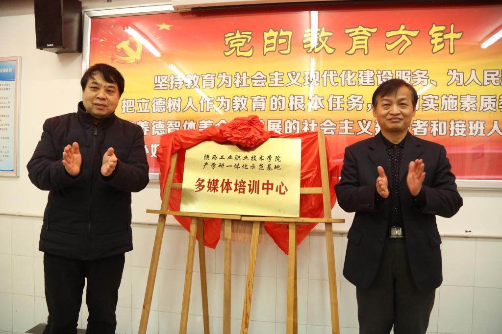 贺天柱副书记与张永忠常委共同为产学研一体化示范基地多媒体培训中心揭牌