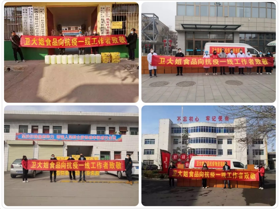 商贸学院2007级学生寇博鋐现为陕西卫大姐食品有限公司董事长,自疫情开始至今,多次带领企业员工,去往渭南市蒲城县包括县医院在内多家与疫情相关的机关、企事业单位慰问,截止2月8日,卫大姐食品向一线抗疫工作者捐赠物资价值55500元。