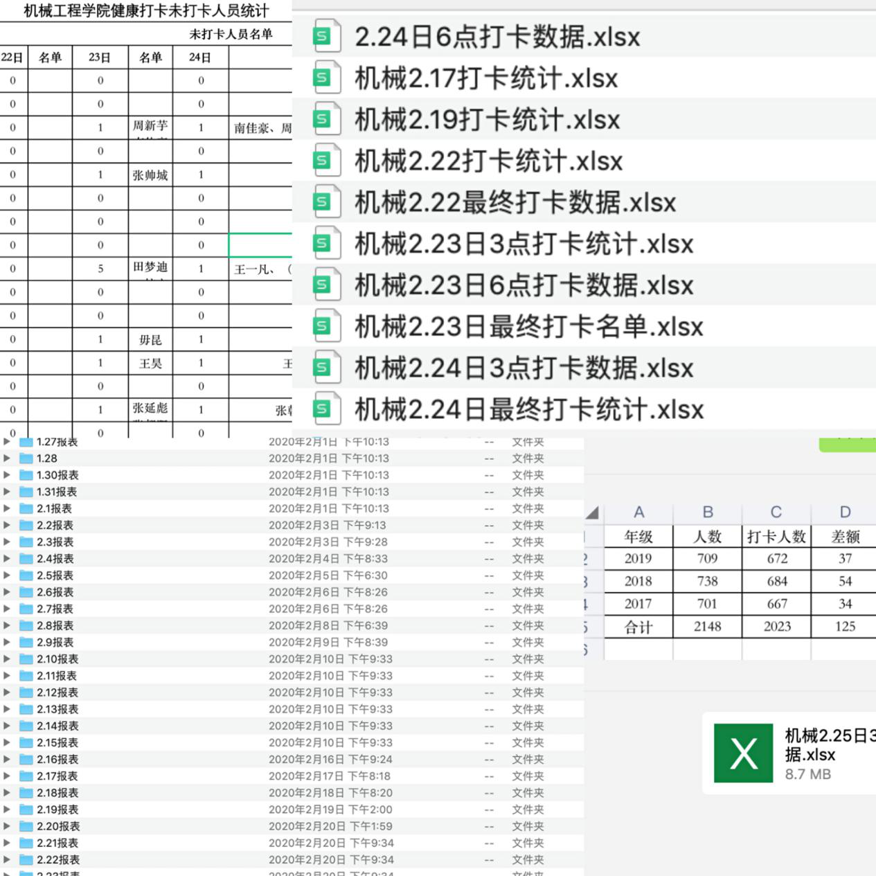 三、落实健康打卡,摸排健康情况。建立“查疫情、理数据、发通知、打电话、审文稿、发宣传、做记录、报情况”的一条龙防控机制,制定每日“三报”数据排查机制,并将打卡记录作为后期学生返校和其他考核的重要依据,精准掌握学生健康状况和流动区域。同时实行分包督促,倡议广大学生积极配合、主动参与健康打卡工作,做好全院人员日常监控,掌握复工和返乡学生健康状况。