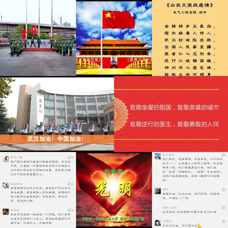 此次线上主题教育活动分为出旗、升国旗奏国歌、教师代表发言、学生代表倡议、学生代表诗朗诵、学生代表手语表演几个环节。上千名师生参加线上活动,大家佩戴党徽或团徽,向手机中冉冉升起的五行红旗行注目礼,心中大声唱响国歌,很多同学还在评论区留言为祖国加油。在这场没有硝烟的战役中,我们虽隔离在家,但心系湖北、心系武汉、心系中华大地的心一直未变。针对近期冠状病毒的现状,师生们纷纷发出了对中国人民的敬畏之声,对中国速度的感叹之情,并发出自律自强的倡议,希望携手与共,并肩战疫。