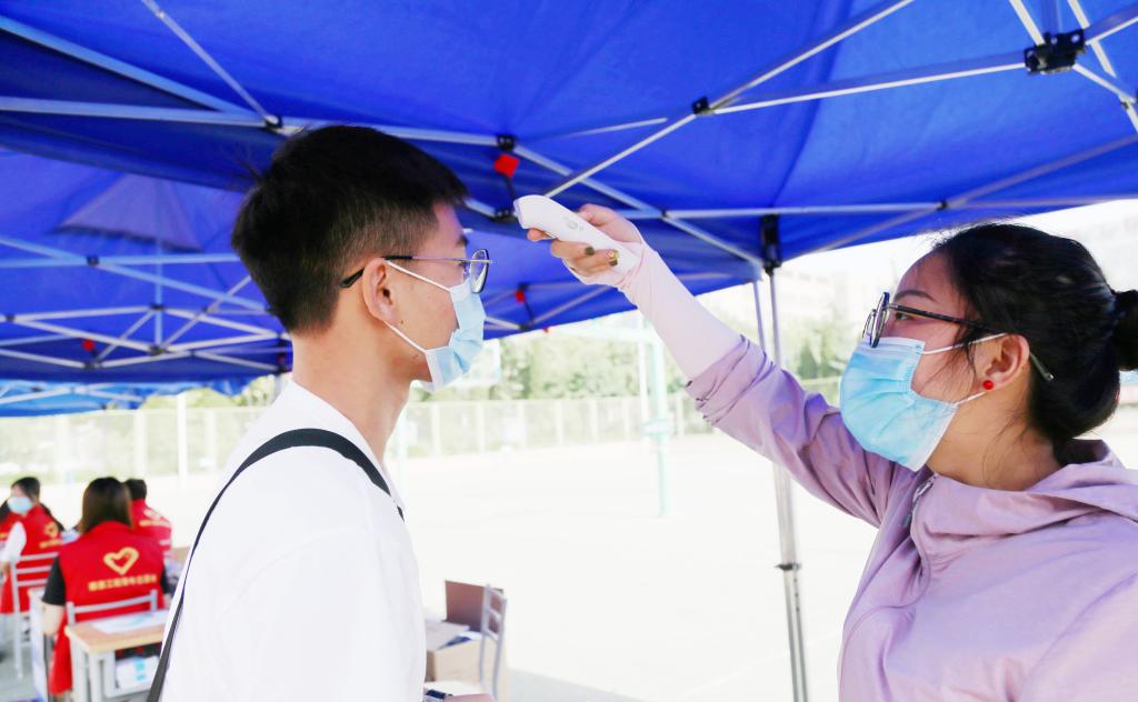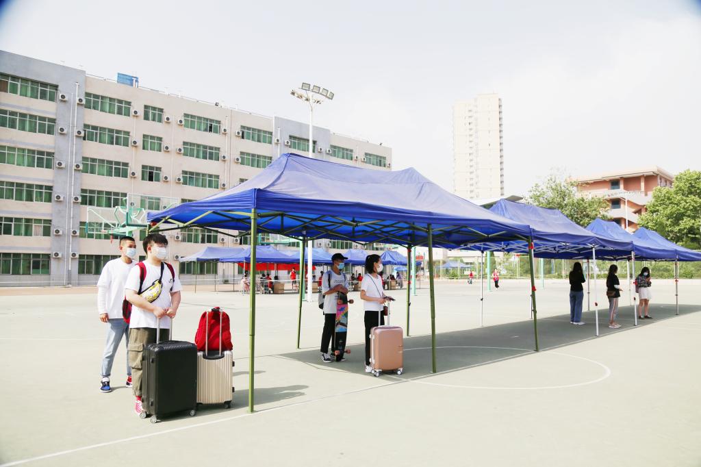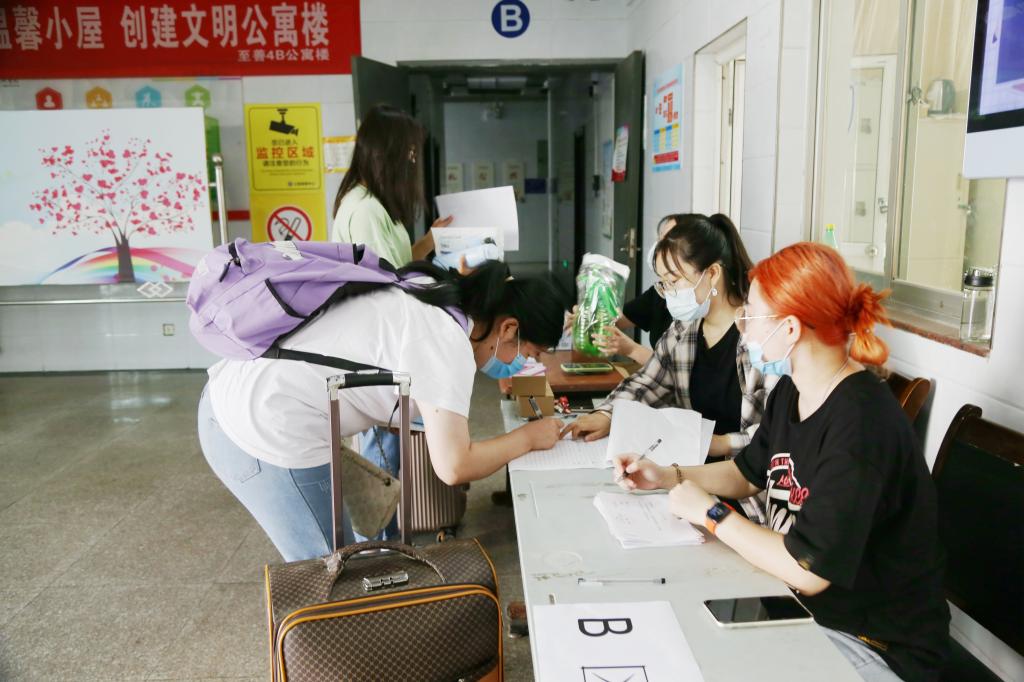 水积春塘晚,阴交夏木繁。5月31日,约2400余名工院学子开始第三批复学返校。在校门口,老师们用灿烂的笑容、温暖的话语欢迎同学们的到来。扫码、测温、刷卡,一项项安全检查,一排排坚守岗位的工作人员,科学的防控措施,便捷的返校流程,都在说明,陕西工院对同学们的返校已经做了最好的准备。