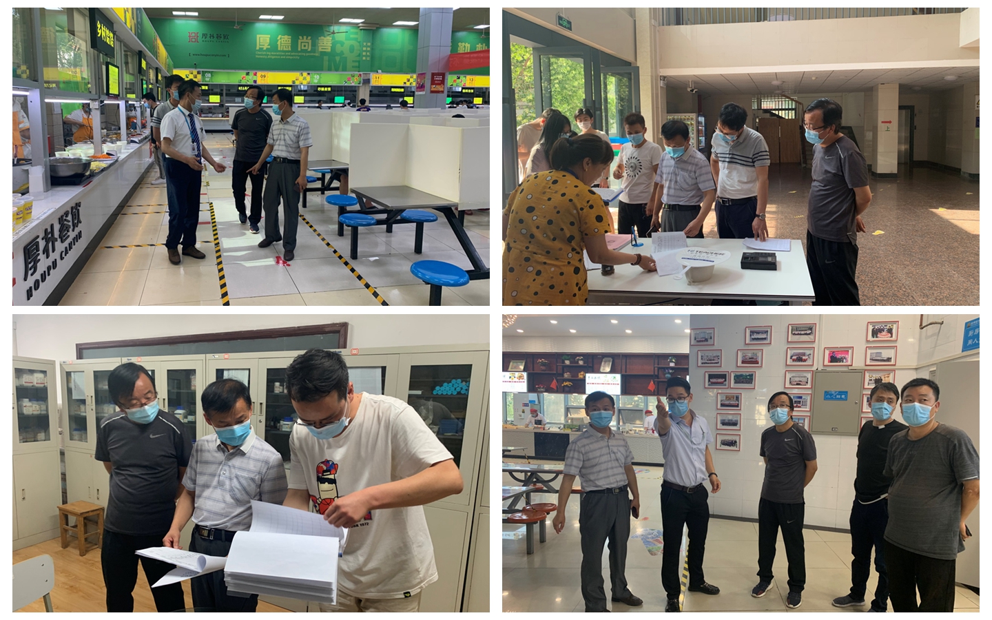 贺书记一行来到教学区、学生公寓、餐厅、实训区等场所,对学生返校体温筛查、就餐分流、食品卫生、校园卫生防疫及安全设施的配置和安全管理落实等情况进行了检查。重点针对学生返校食宿安排、消防、用电设备配置等方面进行了检查和安排,对发现的安全隐患及问题逐一进行了登记,明确了责任部门和整改时限,并就学生返校及稳定安全工作提出要求:一是要时刻绷紧疫情防控这根弦,高度重视学校防疫管控的每个细节,始终把师生员工的身体健康和生命安全放在第一位,坚决把一切风险隐患拒之于校门外;二是要严格按照疫情防控工作指引和学校工作部署,妥善做好各批次学生返校工作;三是要做好学生返校后学习、生活、实习等各个环节的管理和保障工作,确保教育教学工作有序开展;四是当前进入夏季,要做好防火安全工作,加强监测,提前排查整改可能存在的安全隐患,确保校园安全。