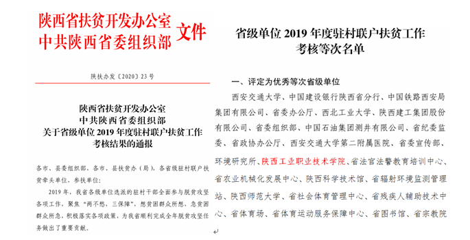 日前,按照陕西省扶贫开发办公室、中共陕西省委组织部下发《关于省级单位2019年度驻村联户扶贫工作考核结果的通报》(陕扶办发【2020】23号)文件精神,乐游棋牌在省级单位2019年度驻村联户扶贫工作考核中获优秀等次,乐游棋牌驻村工作队队长刘智鑫同志获评省级单位选派第一书记优秀等次。乐游棋牌也是全省唯一一所获此殊荣的高职院校