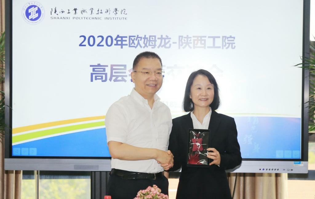 惠朝阳书记向中道教显先生颁发陕西工院-欧姆龙校企合作杰出贡献奖