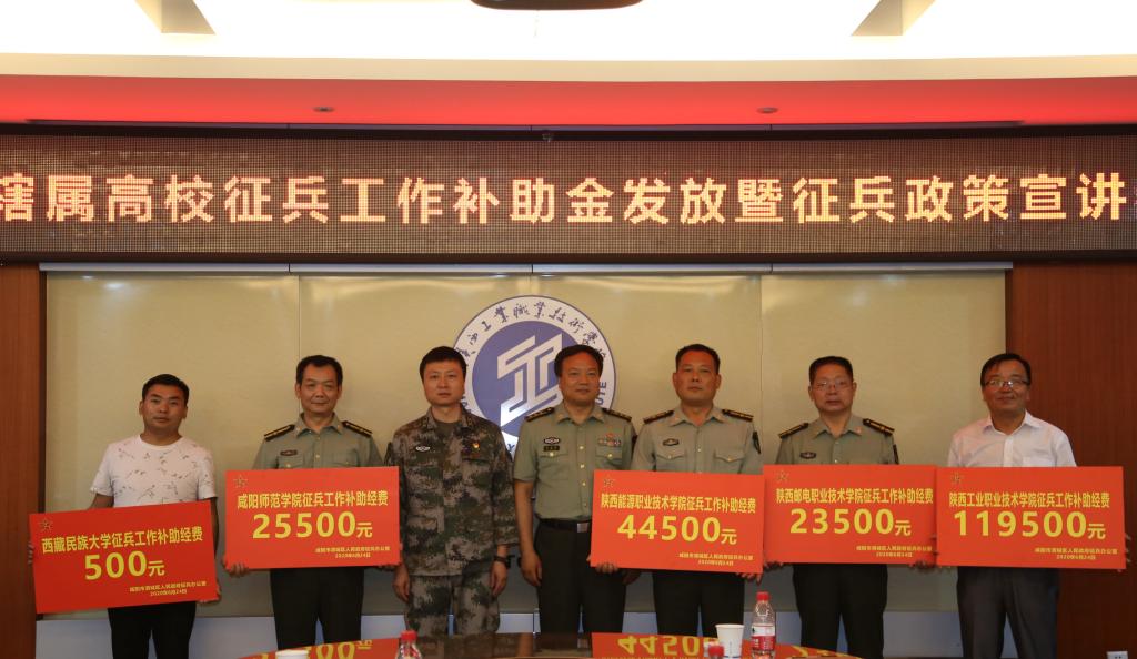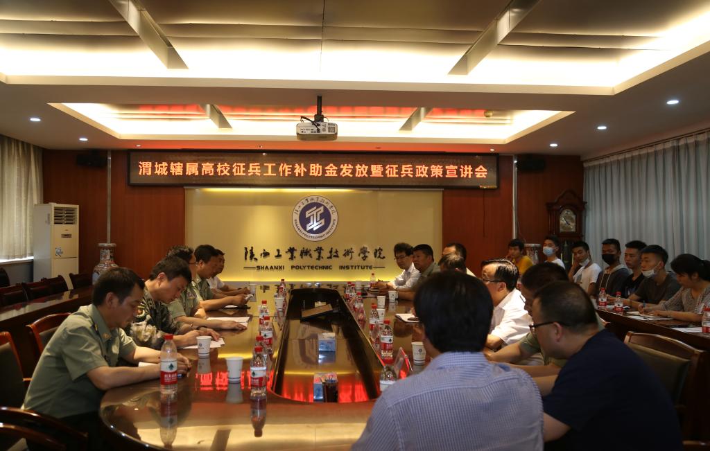 6月24日下午,渭城辖属高校征兵工作补助金发放暨征兵政策宣讲会在崇文楼第一会议室举行。渭城区武装部政委范四成上校、部长田成博上校、副部长袁强中校等一行5人与乐游棋牌党委副书记贺天柱、征兵部门负责人、相关部门负责人、志愿参军学生代表以及咸阳师范学院、西藏民族大学、陕西能源职业技术学院、陕西邮电职业技术学院等院校主管征兵工作的领导、武装部长参加宣讲会,宣讲会由范四成上校主持。