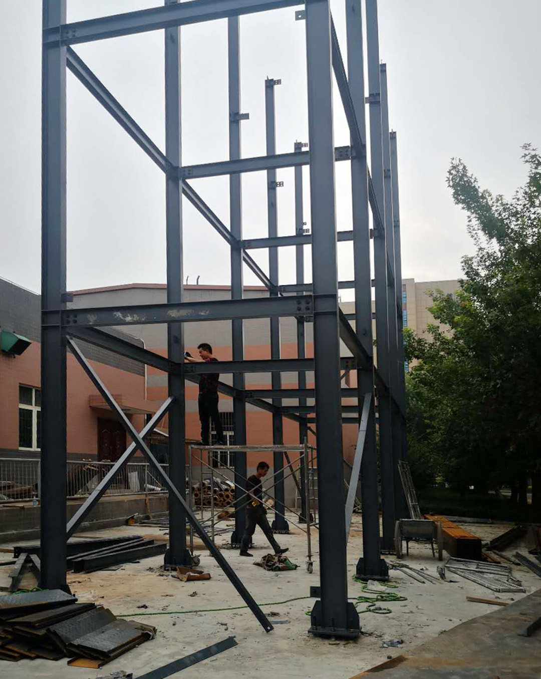“高层建筑爬升式脚手架”研究试验平台主体接近完工