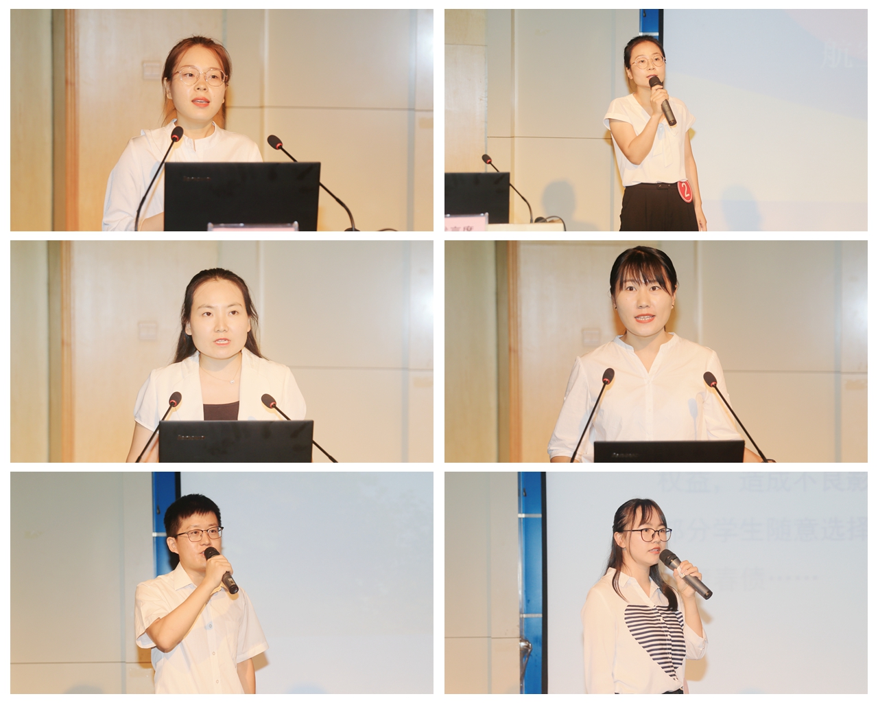 展示环节结束后,评委组组长王金辉老师作了精彩点评。她对各位选手的表现进行了充分的肯定,同时也提出了几点建议,她指出微课现场展示在内容阐述上要有清晰的逻辑关系,详略得当,突出班会的创新设计、矛盾聚焦、教育过程等。她希望借助大赛平台,在工作中涌现出更多的有站位、有爱心、有能力、有办法的辅导员。