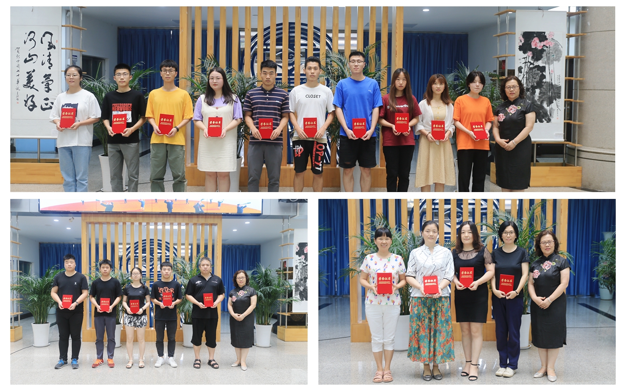 学工部部长郝军、团委书记赵双军为战‘疫’朗诵学生组、“见证·设计之美”获奖师生以及图管会“优秀个人”颁奖