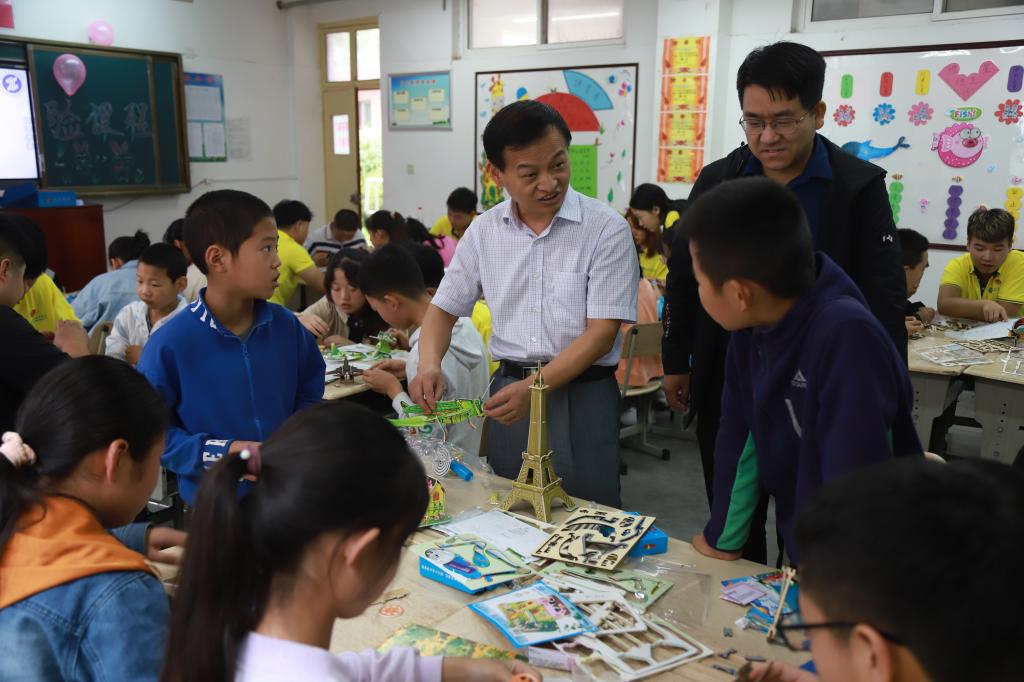 贺书记一行首先走进“三下乡”社会实践支教课堂,现场观摩了支教志愿者为南坊镇中心小学的小朋友开设的音乐课、手工课、舞蹈课等第二课堂课程与职业启蒙教育课程,询问了志愿团队成员的社会实践、生活情况,与志愿者们进行了亲切交谈,对大家在常态化疫情防控形势下,依然主动请缨参加社会实践活动给予了高度肯定,并勉励同学们要发扬艰苦奋斗的精神,加强历练、不断成长,注意饮食卫生和居住安全,在实践中“受教育、长才干、作贡献”。
