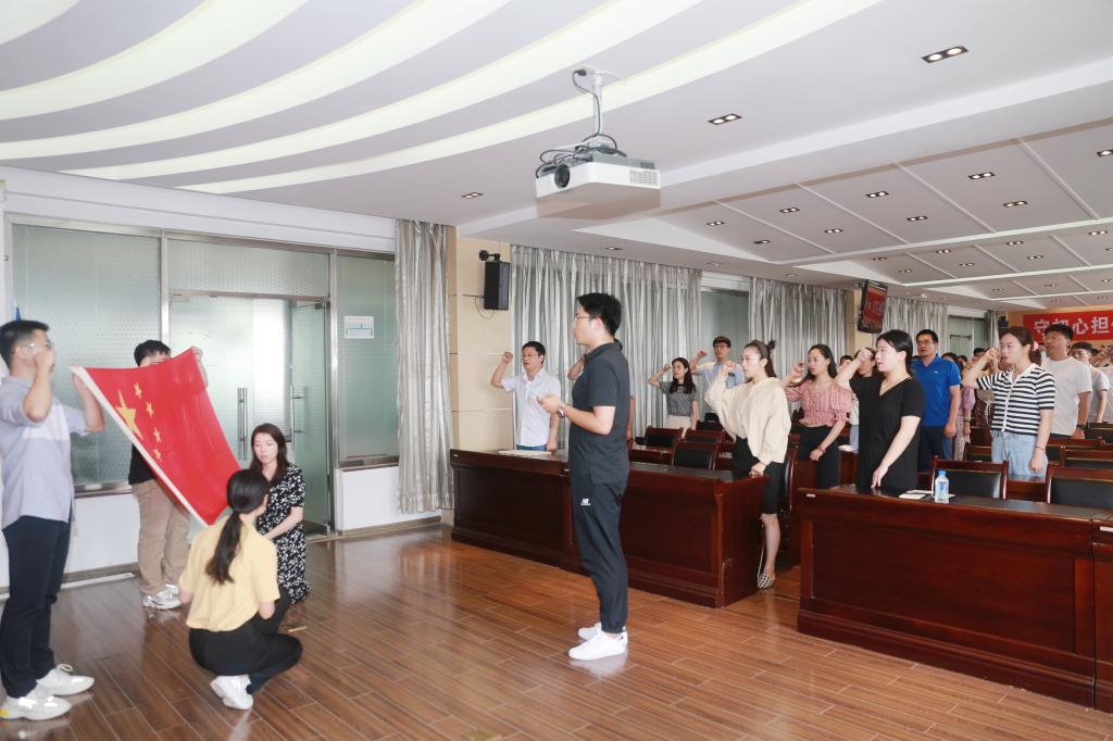 宣誓仪式上,新进教师权超带领全体新进教师面向国旗,紧握右拳,庄严承诺,为党和人民的教育事业而努力奋斗!新进教师代表韩畅发言表态:在学院“双高”建设和新校区建设的关键时期,每一位工院人都应当与学院同呼吸、共命运,今后将牢记院领导的教诲,兢兢业业、勤恳务实、无私奉献、立德树人,为学院和学生的发展贡献出一份微薄但坚定的力量!
