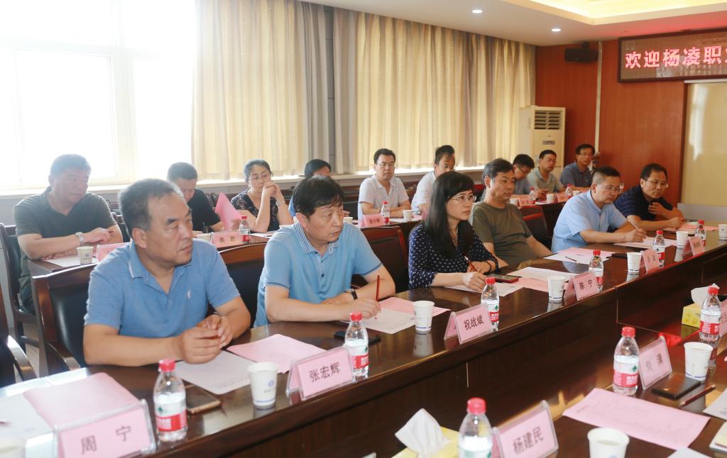 7月31日中午,杨凌职业技术学院一行17人在党委书记陈宁,副院长张迪、祝战斌的带领下来我校就新校区建设情况进行调研。学校党委书记惠朝阳,院长刘永亮,副院长梅创社、刘清和发展规划处、基建处、财务处、国资处、后勤处等相关部门的负责人在崇文楼九楼第一会议室与来宾进行了交流座谈。调研会由院长刘永亮同志主持。