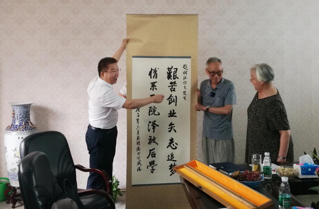 调研期间,惠朝阳书记一行特地看望了我校创业先锋陈特夫教授。对陈特夫教授为促进我校师生成长特别设立的“特夫教育奖励基金”表示诚挚的感谢,希望陈特夫教授能多回学校走一走,看一看,一如既往地关心和支持学校发展,依托创办企业的技术研发优势,加强与学校在技术研发、成果推广等方面的深度合作。