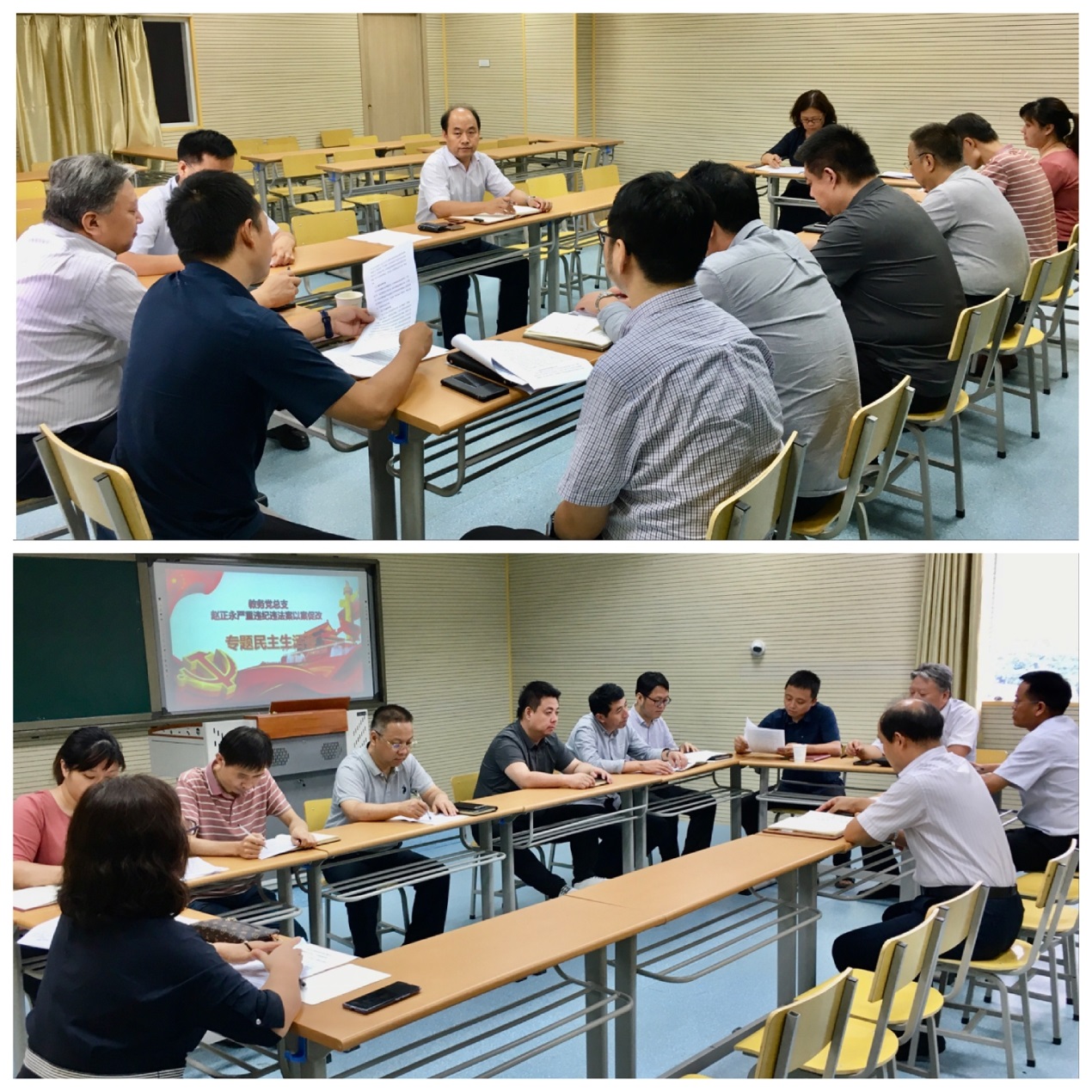 首先,段峻同志代表教务党总支领导班子进行对照检查,通报了2019年“不忘初心、牢记使命”主题教育专题民主生活会查摆问题整改情况、本次专题民主生活会前期工作情况,从“两个维护”、政治纪律和政治规矩、廉洁自律、作风建设、担当作为、全面从严治党等六个方面查找存在的问题、分析问题的根源,提出了整改落实的方向与措施。