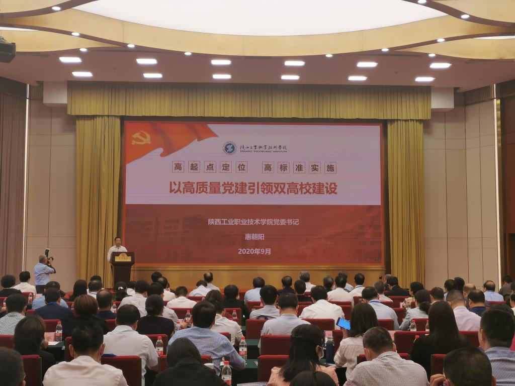 我校党委书记惠朝阳以《高起点定位 高标准实施 以高质量党建引领双高校建设》为题,从坚持政治引领,打造过硬领导班子;加强组织建设,增强基层党组织组织力;实施“四优育人”,筑牢思政育人坚强阵地;落实主体责任,深入推进全面从严治党四个方面做了报告。