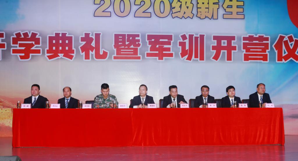 10月13日上午,我校2020级新生开学典礼暨军训开营仪式在明德堂举行,学校领导惠朝阳、刘永亮、康强、贺天柱、田昊、梅创社、刘清、段峻,承训部队首长和各处级单位负责同志、2020级一千余名新生代表参加了仪式,仪式由党委副书记贺天柱主持。此外,本次典礼还在学术会堂设立分会场,全体新生通过现场直播观看典礼盛况。