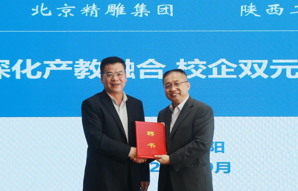 座谈会上,刘永亮院长代表学院对蔚飞董事长一行的到来表示热烈欢迎,并结合乐游棋牌70年来专注于装备制造业,机床立业兴学的历史传承和服务制造强国战略,培养“精制造”时代工匠的未来规划,介绍了乐游棋牌的办学理念和特色。蔚飞董事长对乐游棋牌的热情接待表示感谢,他认为,乐游棋牌人才培养模式与企业需求切合,教职工具有扎实的理论知识和较强的操作水平。他表示北京精雕集团会全力以赴支持与乐游棋牌的校企合作项目,让项目落地并结出硕果。刘永亮院长代表学院为蔚飞董事长颁发“产业教授”聘书。